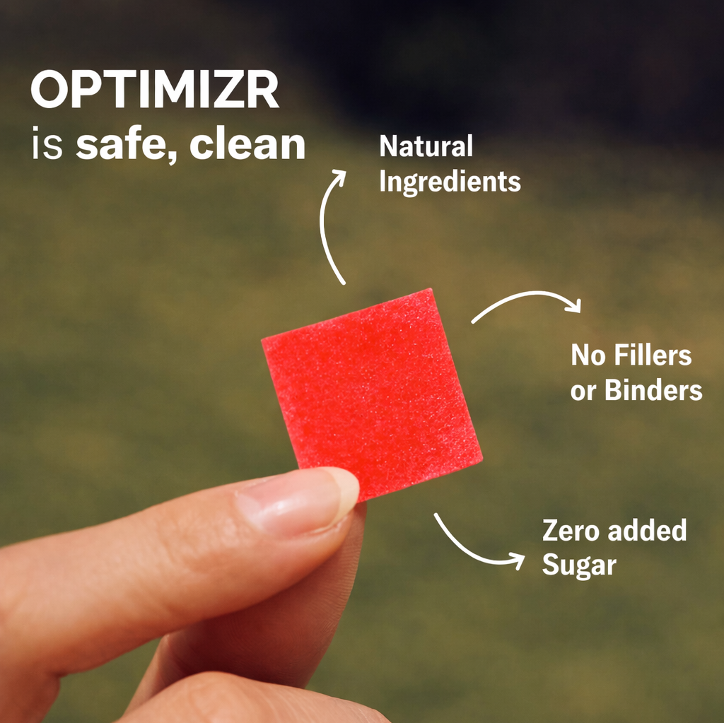 Optimizr strips dissolve on your tongue for rapid absorption and clean results. Just place a strip and go. No pills, no mixing drinks, no hassle.